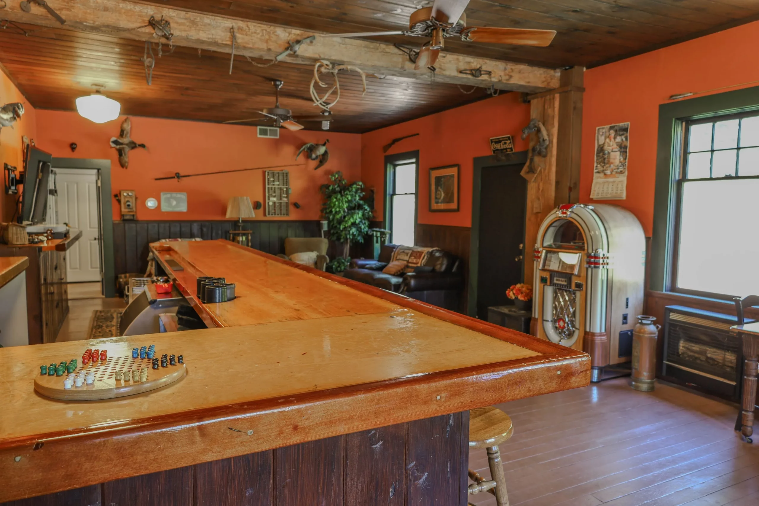 Fully functional wet bar, Juke Box, 60″ HDTV, games and puzzles.