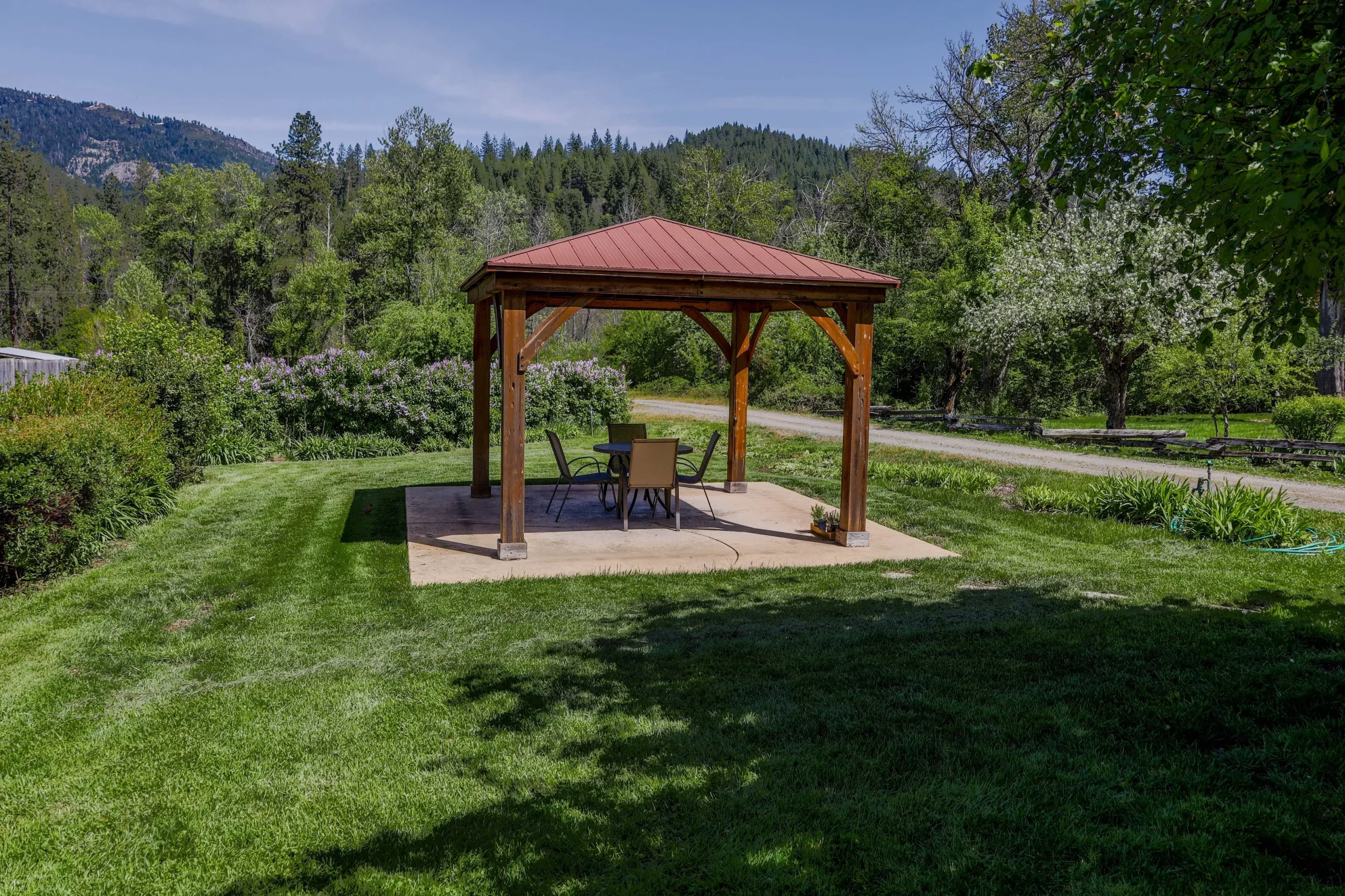 Enjoy a short walk to the Trinity River, peaceful trails beneath the trees, and fresh berries and fruit you can pick right in season.