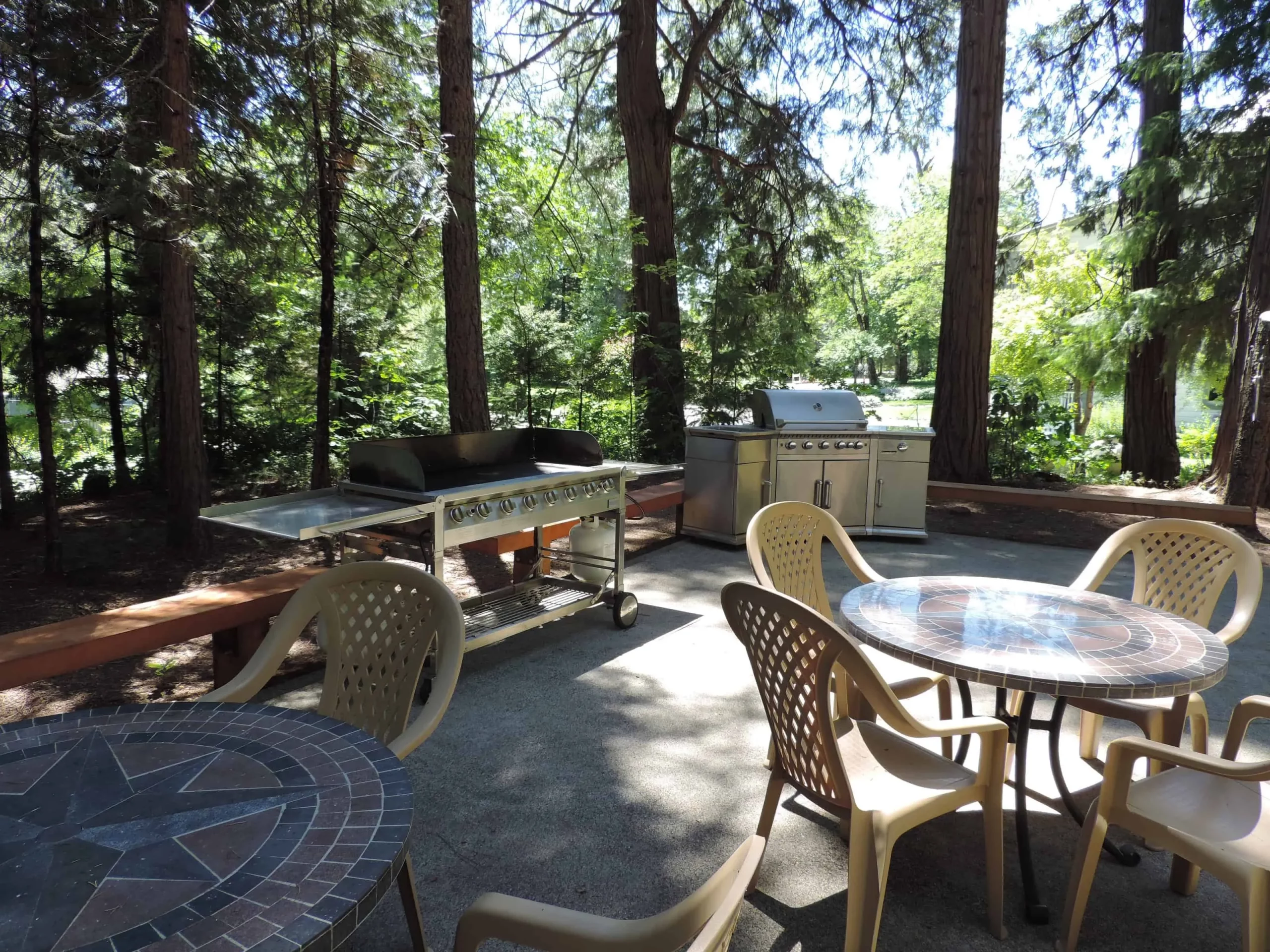 Picnic tables and outdoor seating.